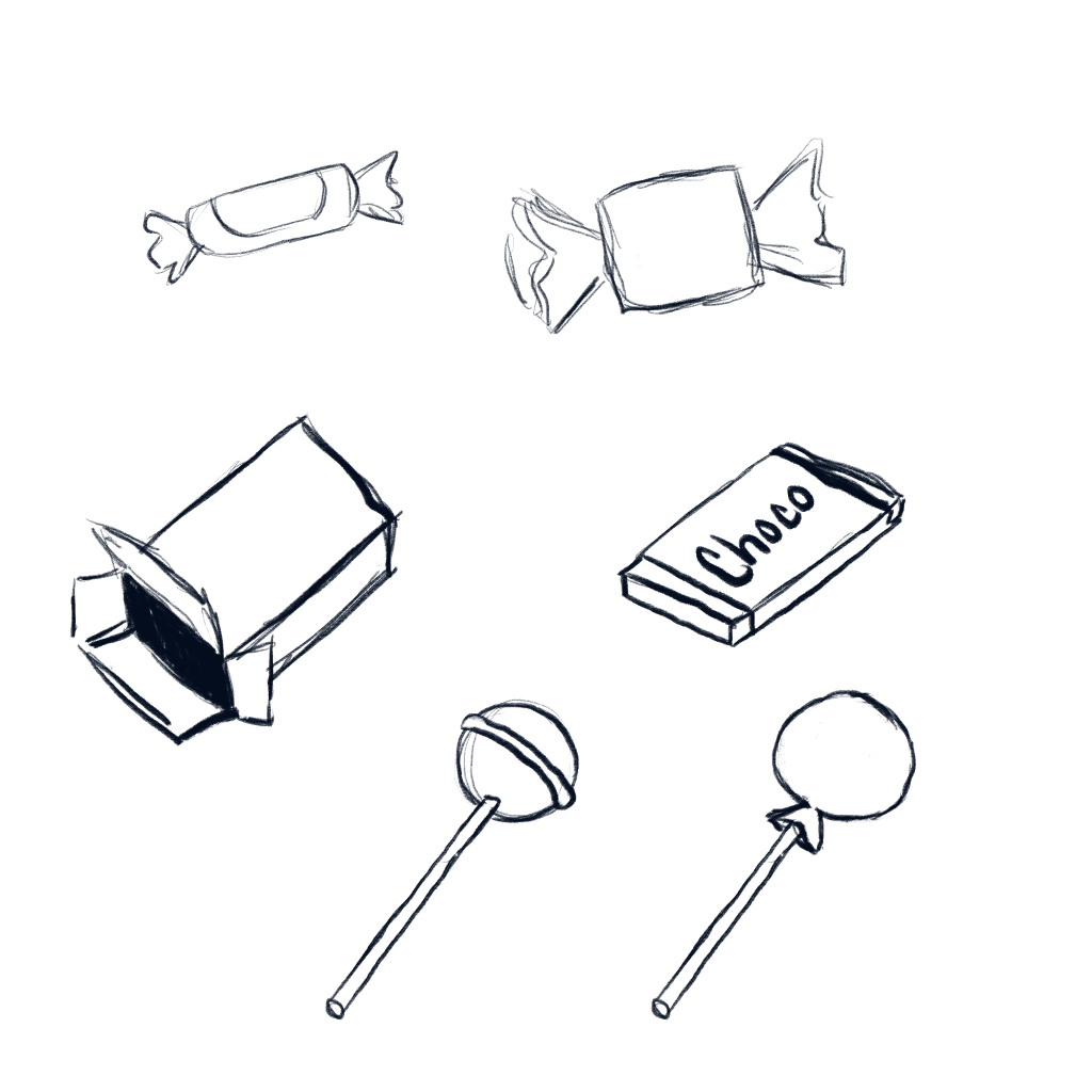 I sketched out some common Halloween treat shapes and tried to wrangle them into a pleasing pattern.