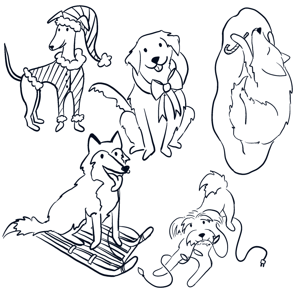 I sketched all the dogs in Procreate then vectorized them in Affinity Designer. The greyhound in the hat was first but by the end, I had a whole pack of cheerful dogs ready to take over a gift wrap roll or a holiday quilting project.